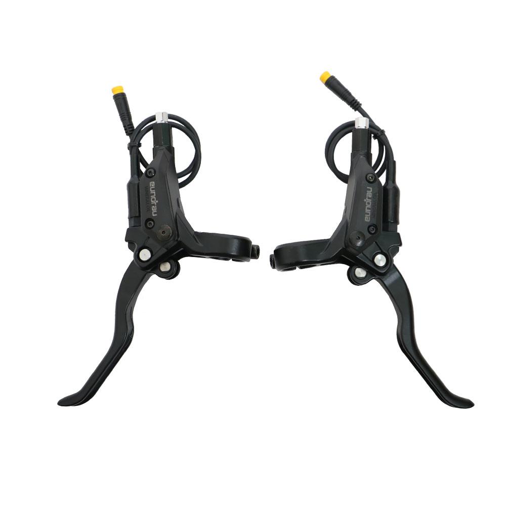 EUNORUAU ENA 2 piston hydraulic brake sensor set including 180mm brake rotors. This brake set is for a high-performance electric bike brake system.